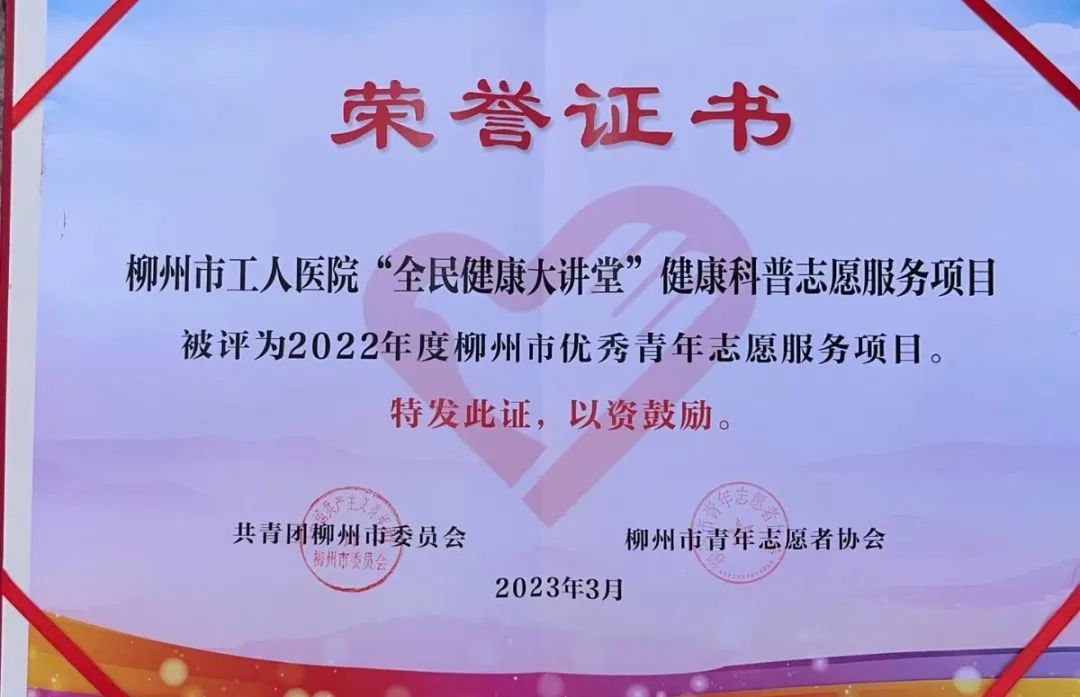 喜报|柳州市工人医院“全民健康大讲堂”荣获柳州市“优秀青年志愿服务项目”奖