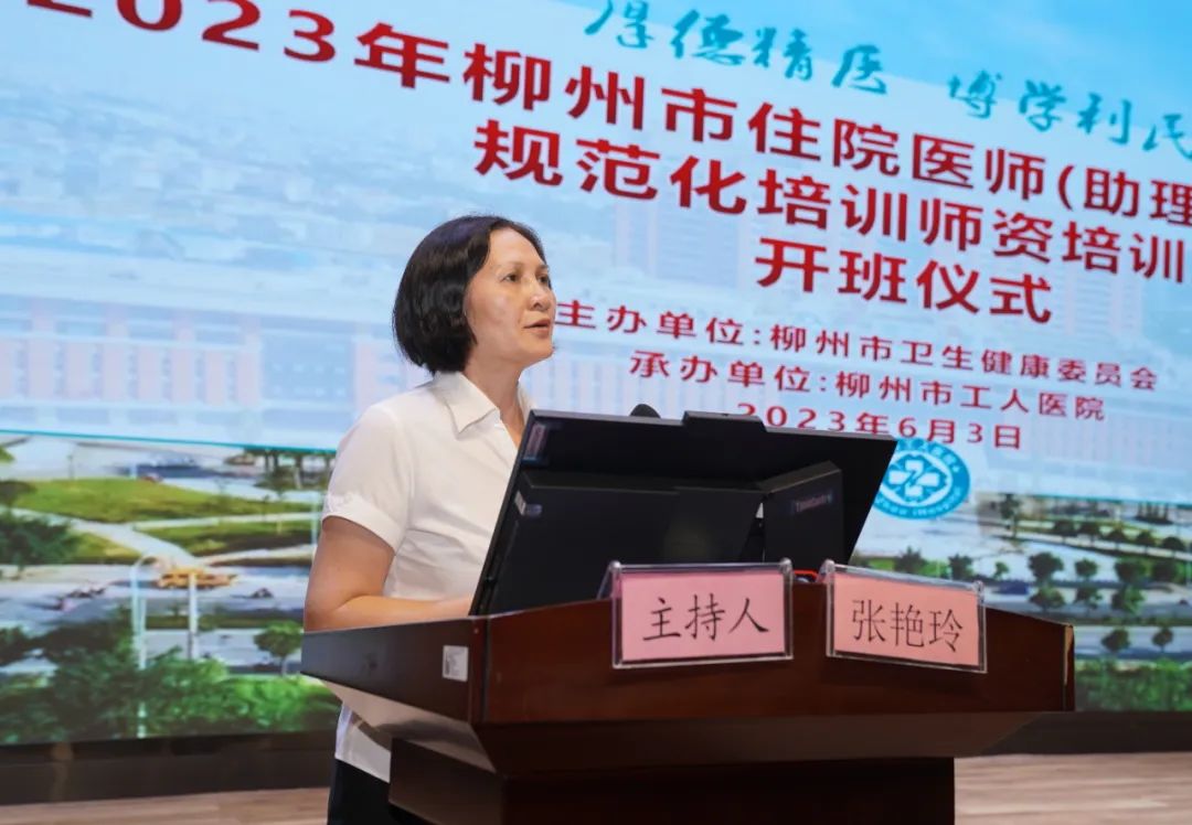 柳州市卫生健康委覃映雪副主任、柳州市工人医院郑捷敏副院长出席开幕式,来自柳州市各住院医师(助理全科医生)规范化培训基地的100余名管理人员和骨干师资参加。柳州市工人医院原教育科科长、院级督导张艳玲主持本次培训班。