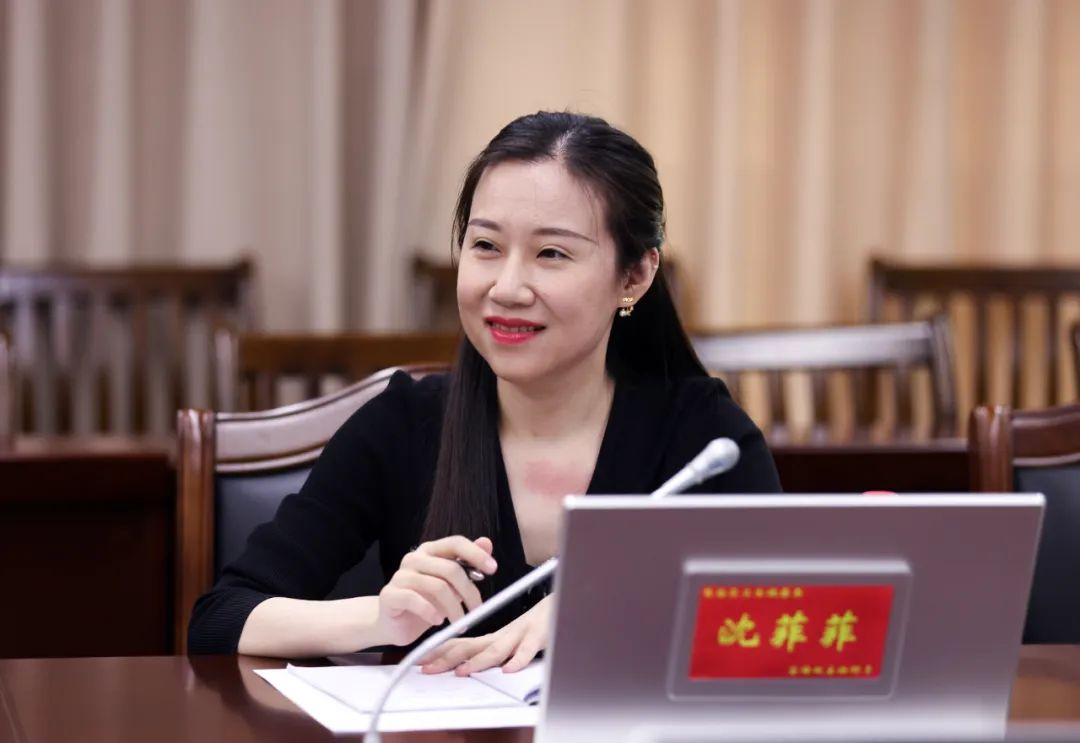 院长黄海欣(右)向调研组一行介绍我院基本情况