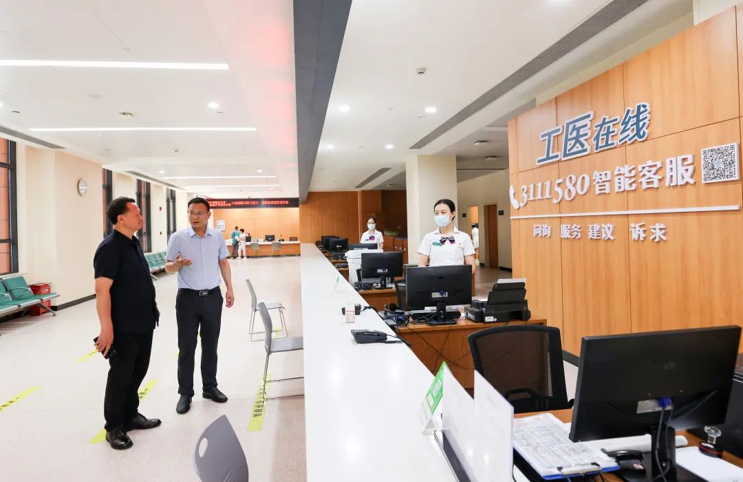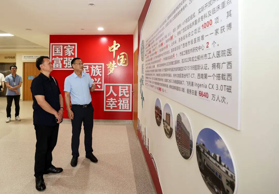 7月5日上午,人民日报社人民论坛杂志社通联部主任李富强一行在自治区卫生健康委宣传处三级主任科员沈菲菲的陪同下,到柳州市工人医院开展公立医院信息化建设相关工作调研。柳州市卫生健康委副主任覃映雪、柳州市工人医院院长黄海欣、副院长侯培勇,柳州市卫健委宣教科科长姚建光、规信科科长余黎刚及柳州市工人医院相关科室负责人陪同调研。