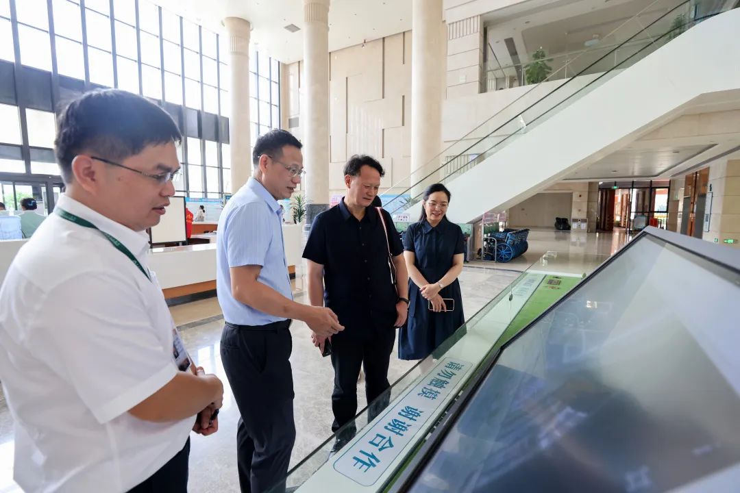 调研组一行参观门诊大厅医院沙盘和VR全景