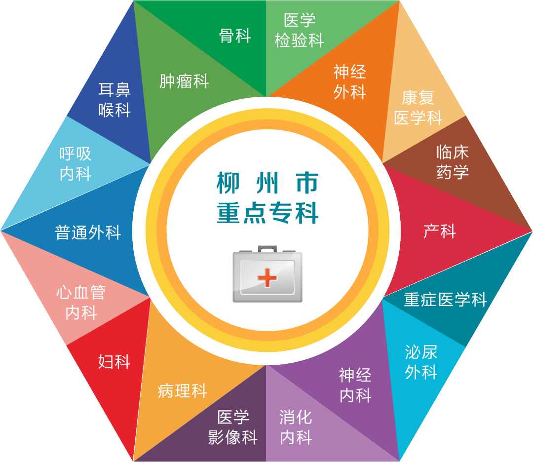 2023年7月, 柳州市工人医院创伤外科荣获国家临床重点专科建设单位(中央财政支持项目),标志着我院学科建设取得历史性突破!目前,医院拥有国家级临床重点专科建设项目1个,广西区级临床重点专科及临床重点(建设)专科11个,柳州市级重点专科18个(含1个建设项目),广西区重点学科6个,广西妇幼健康服务重点建设学科2个,获批自治区卫健委重点实验室1个,柳州市重点实验室6个,柳州市工程技术研究中心2个。