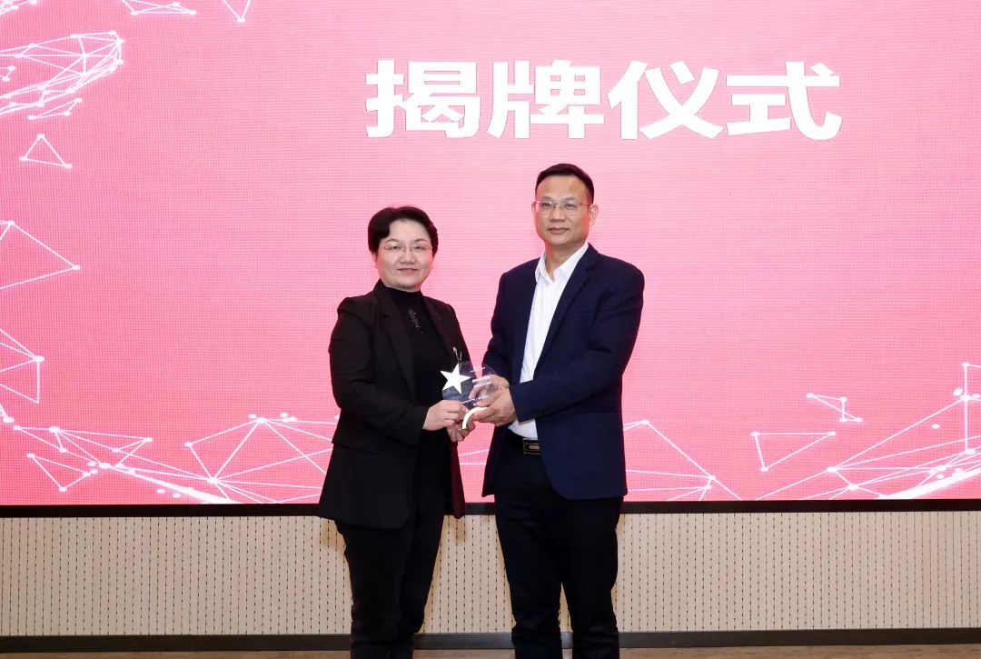 柳州市工人医院院长黄海欣(右)向皮肤科主任肖文颁发“2022年度银屑病规范化诊疗中心优秀质控单位“奖杯