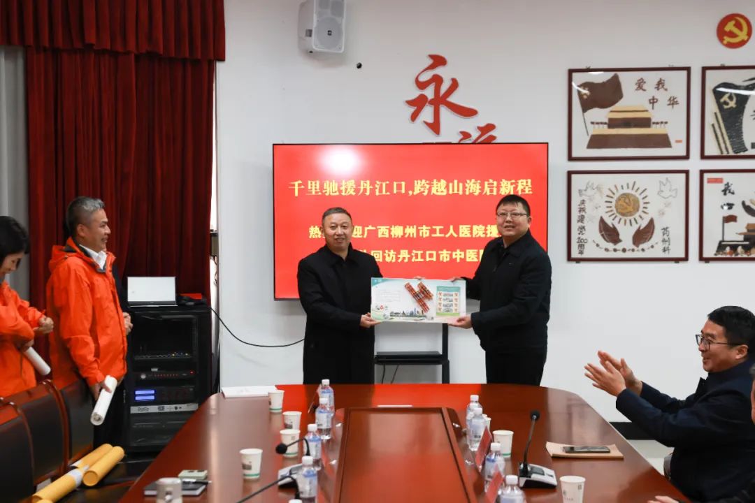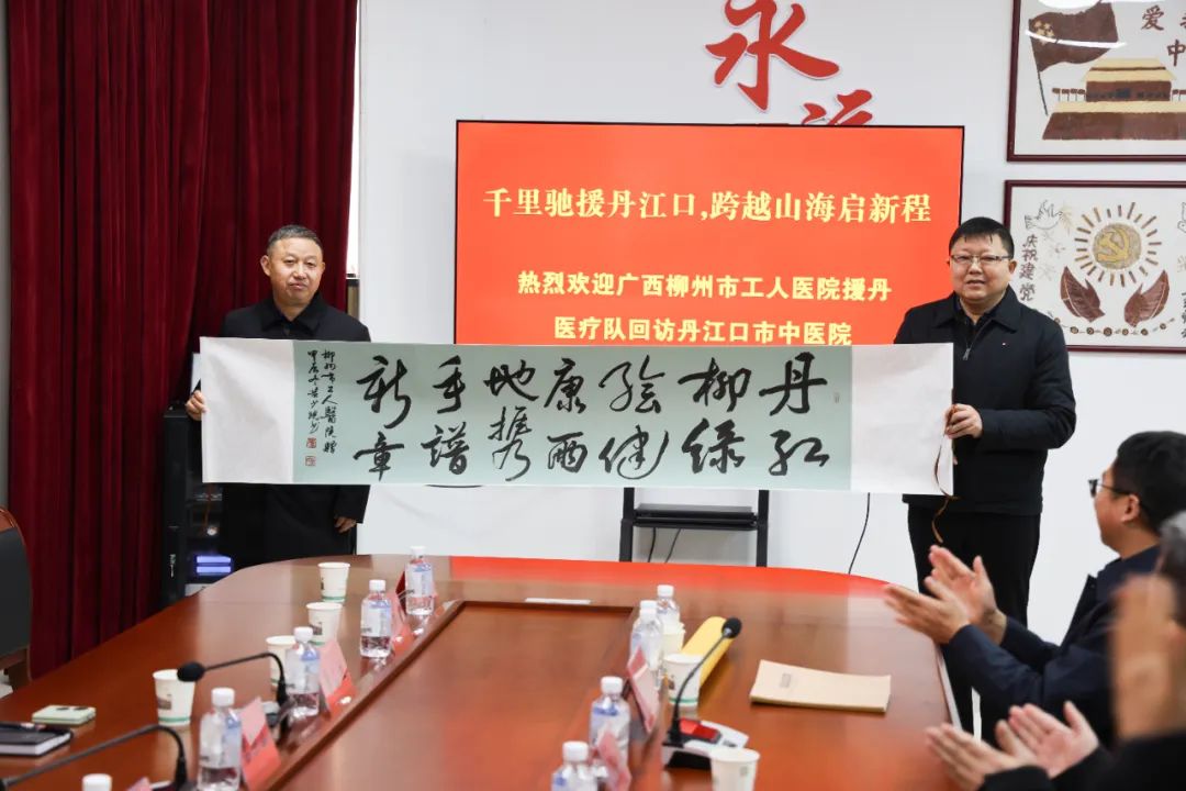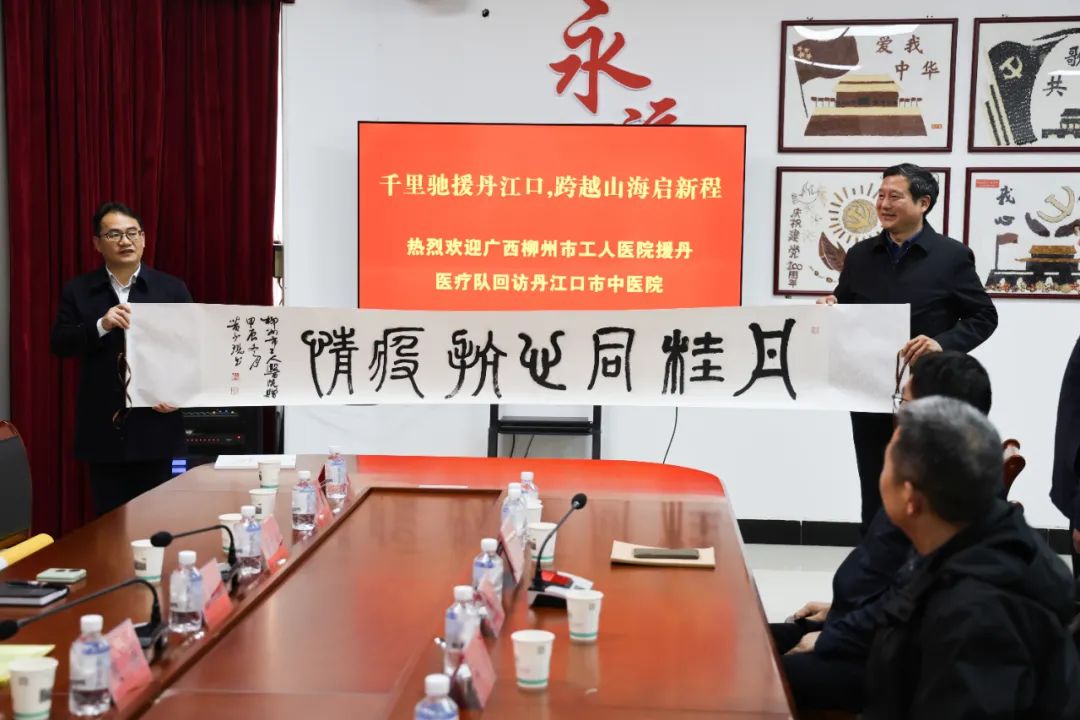 柳州市卫健委、柳州市工人医院向丹江口市卫健局、疾控局、中医医院分别赠送联谊字画、纪念邮册。