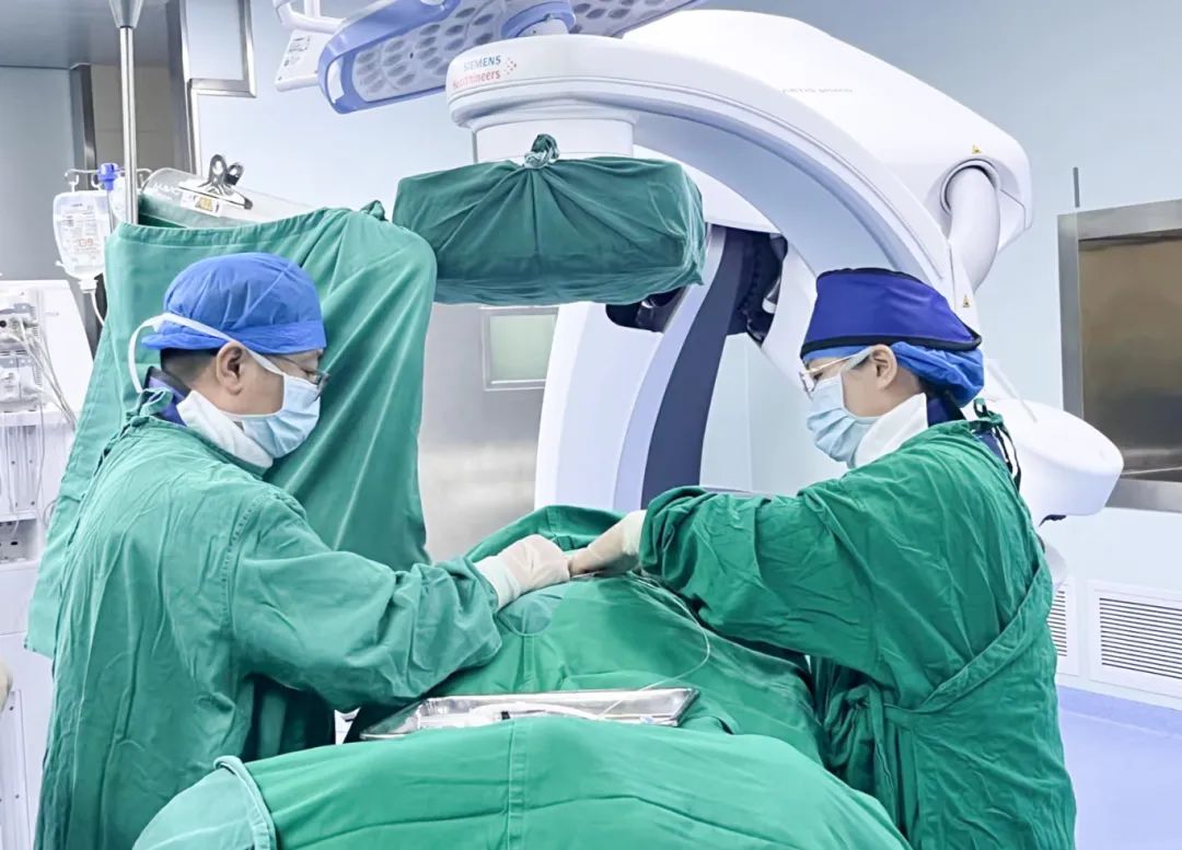 在麻醉科与导管室的紧密配合下,卢建华主任团队凭借精湛的技术与不懈的努力,成功将电极精准植入白先生的硬膜外T8-T11椎体节段,顺利完成了这一开创性的手术。